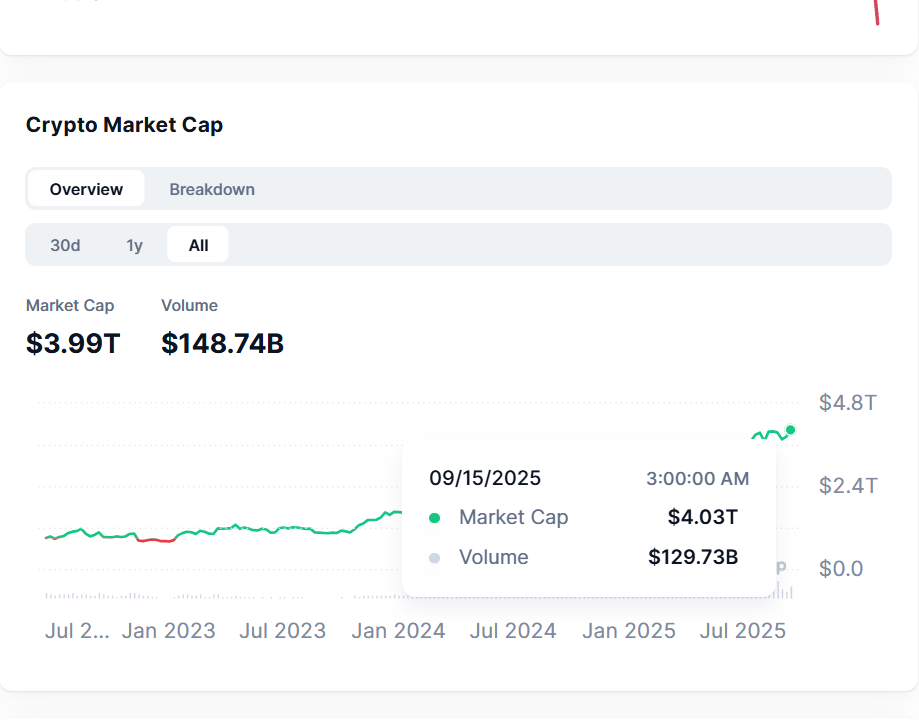 Капитализация рынка криптовалют вернулась к отметкам выше $4 трлн